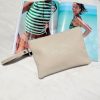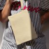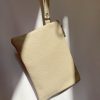Beige Leather Clutch Bag Minimalist Wristlet Purse Women
