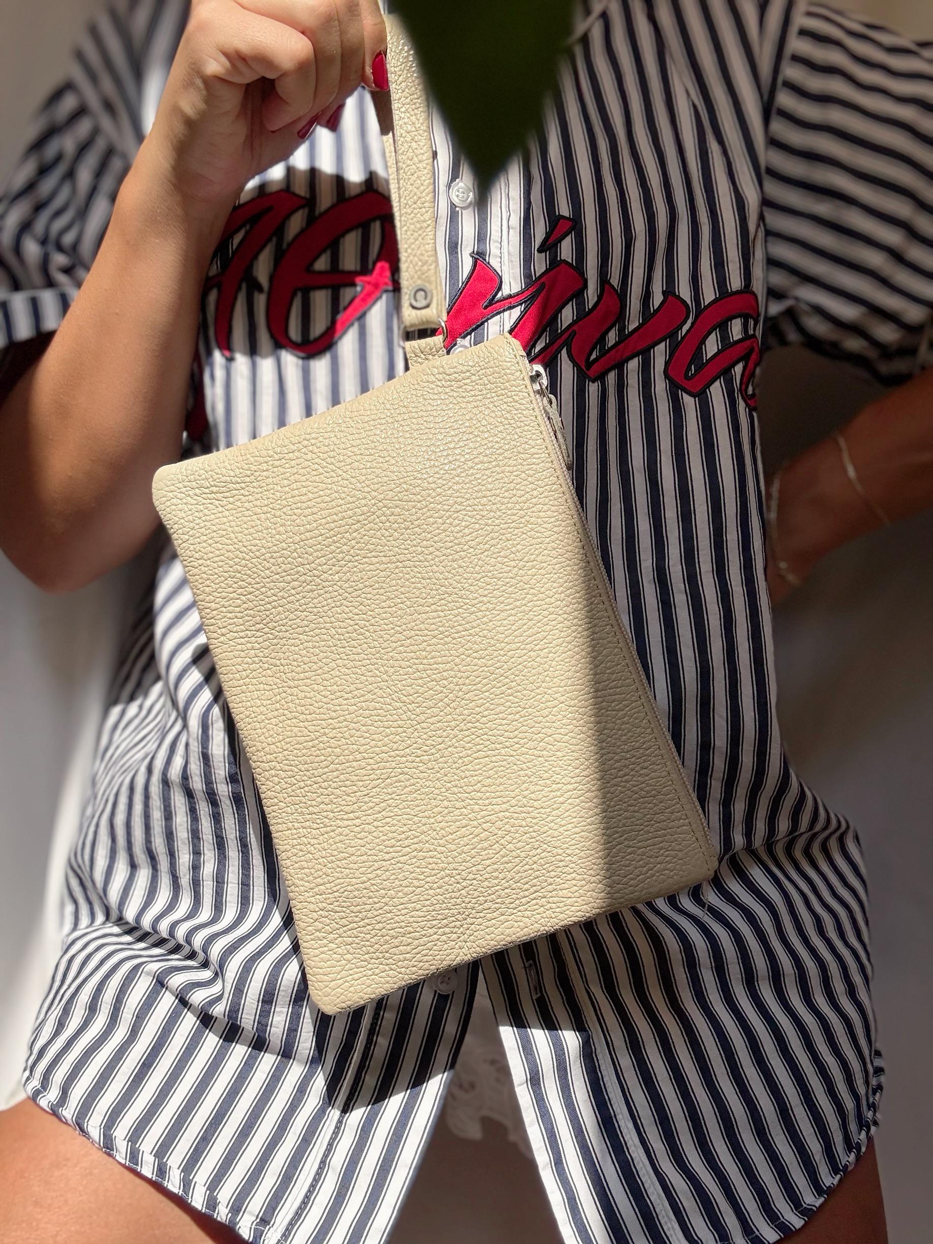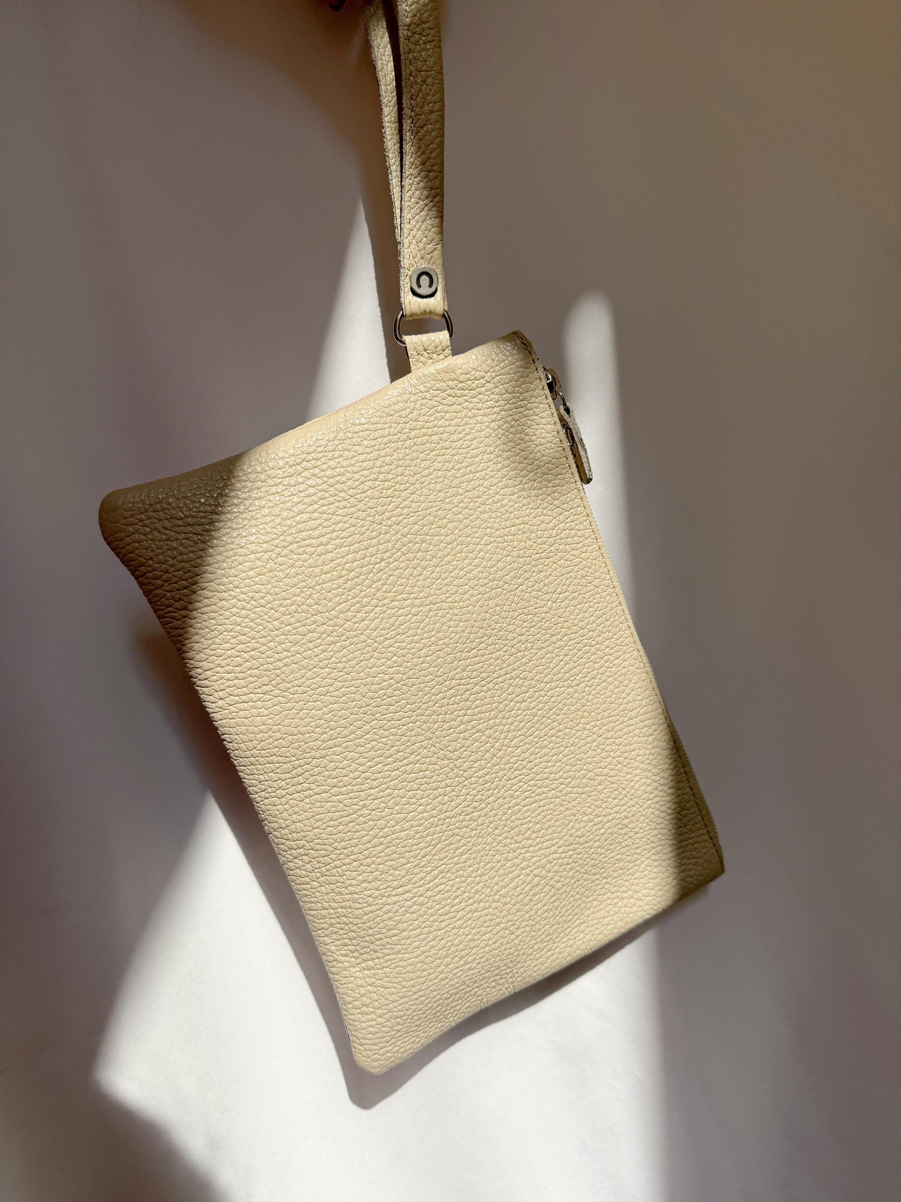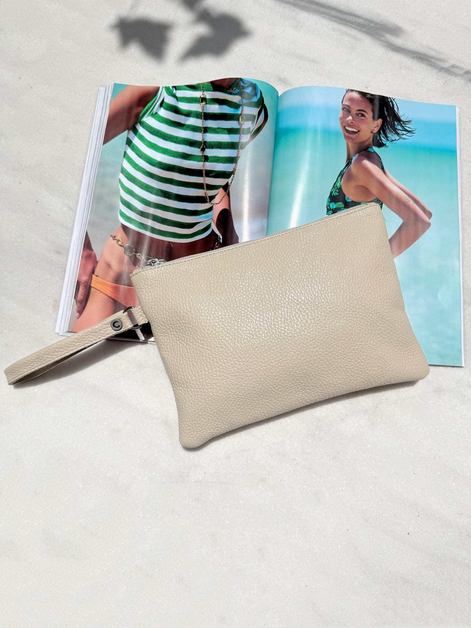 Soft, minimal and chic my new handmade beige leather clutch is crafted from full grain cow leather and made to fit effortlessly into your summer wardrobe. Featuring a wrist strap, zip closure and metal buckle detail, it s perfect for day-to-night. A timeless leather pouch designed for ease and elegance. Find them only at our Store.