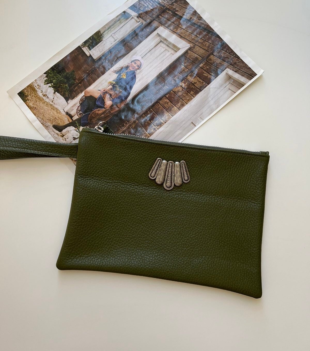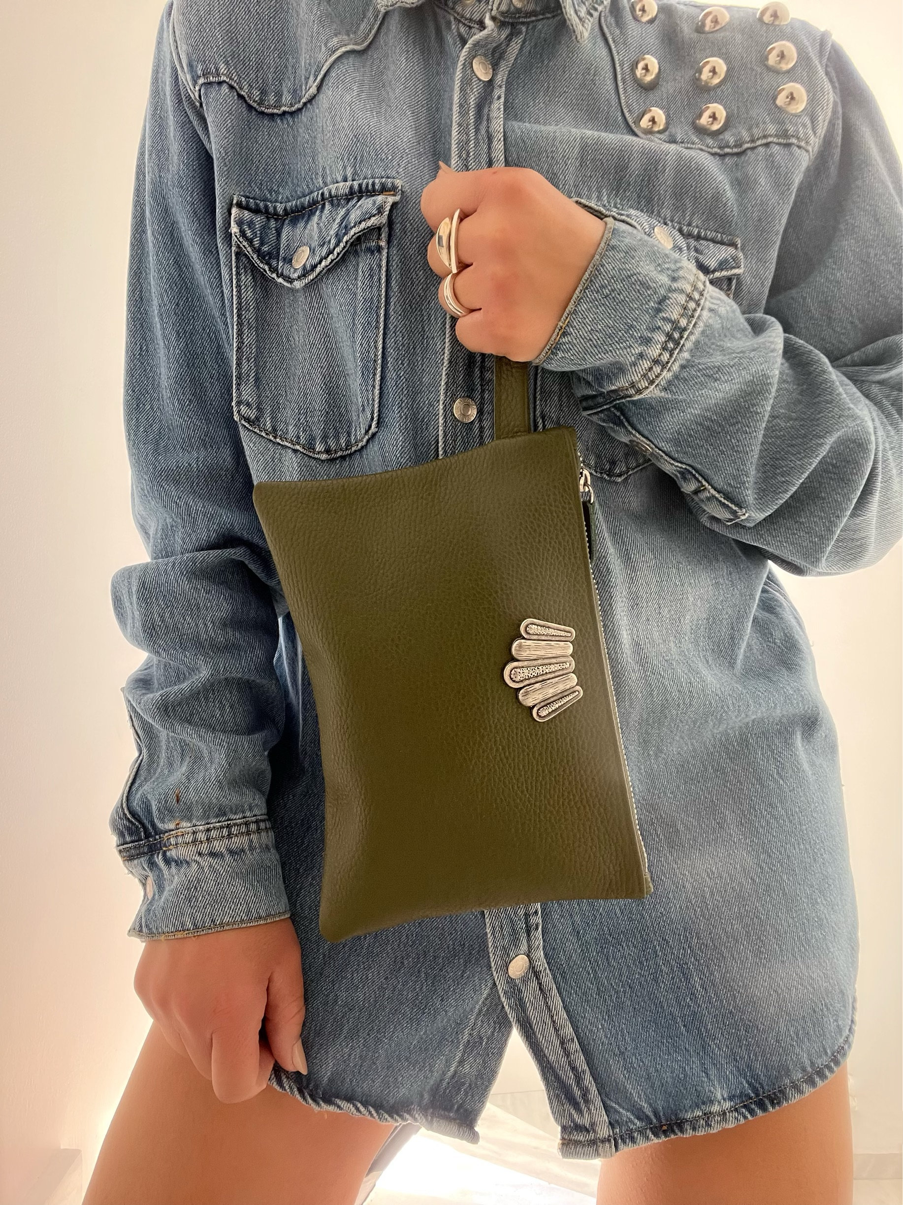 Introducing our exclusive Handmade Leather Clutch! Crafted from exquisite Full Grain Leather in a stunning oiled color, this clutch features a chic minimal silver buckle embellishment. The spacious interior offers versatile usage, perfect for carrying essentials on-the-go or as a stylish wallet. Elevate your everyday look with this functional and fashionable accessory. Be unique and make a statement. Available exclusively at our Store.