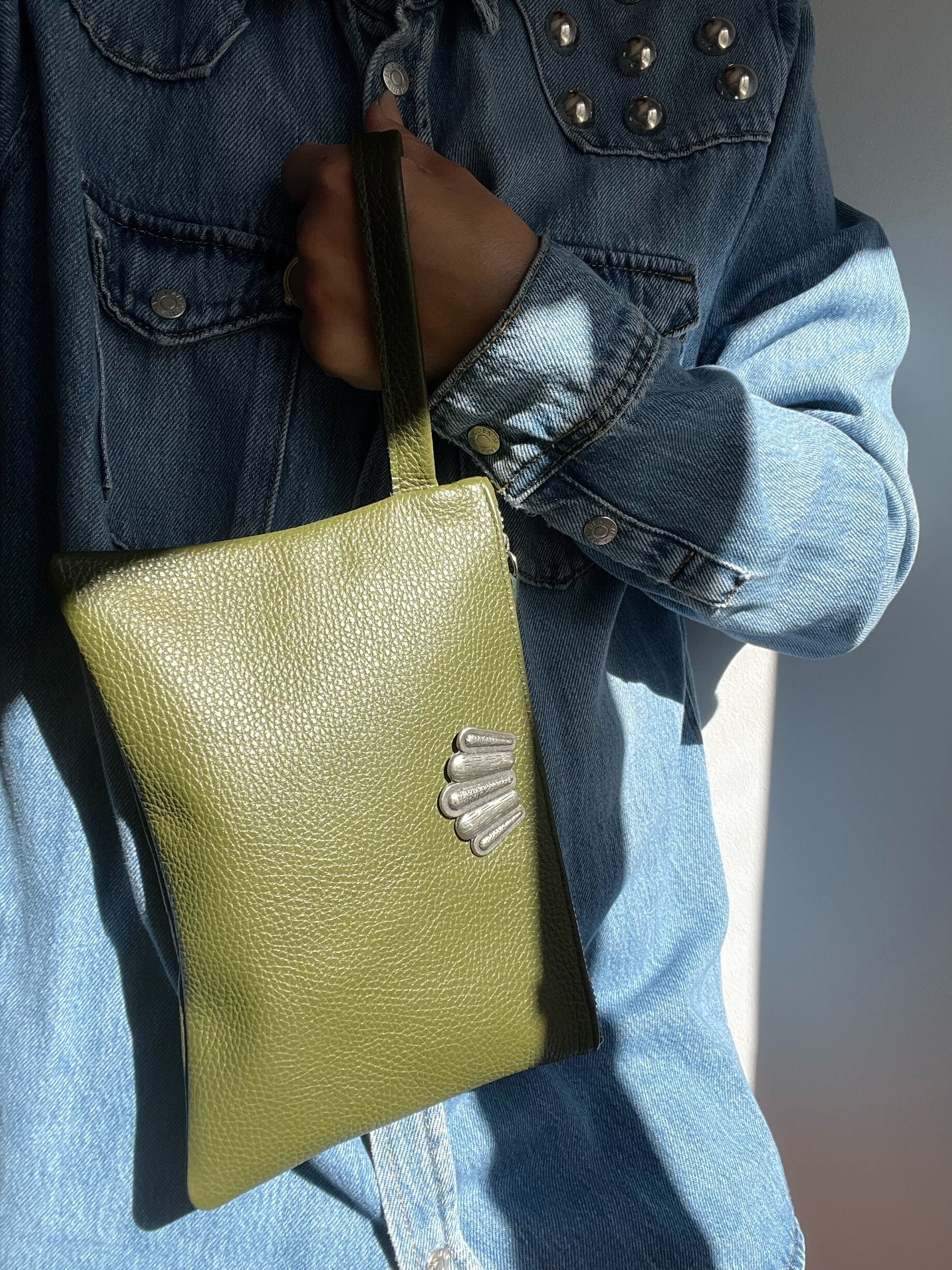 Women Clutch Necessar Bag Olive Green Evening Made